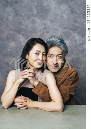 おしゃれなシニア・ミドルエイジ男女のカップルフォト