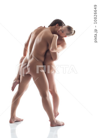 Female slender dancers in high heels and tight sexy clothes pose on floor,
