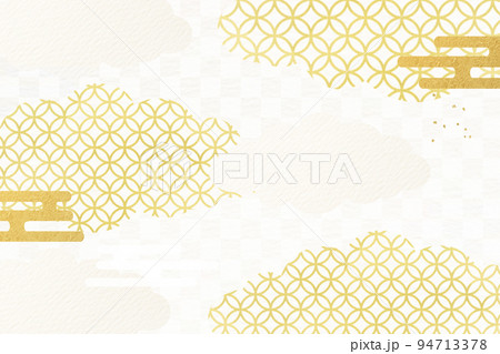 金色の雲の文様。上品でシンプルな和風背景。そして年賀状やお祝い事に使えるテンプレート。