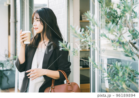 テイクアウトコーヒーを持つ女性