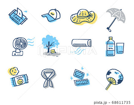 熱中症対策セット 手描き 線画