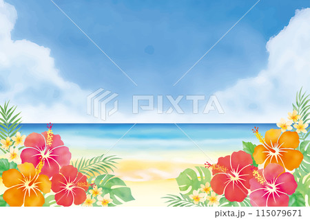 青空と海の夏イメージのベクターイラスト背景(ビーチ)