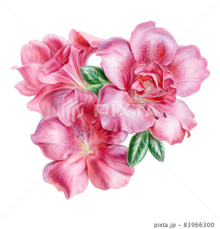 Pink azalea flowers, bouquet, illustration, watercolor painting