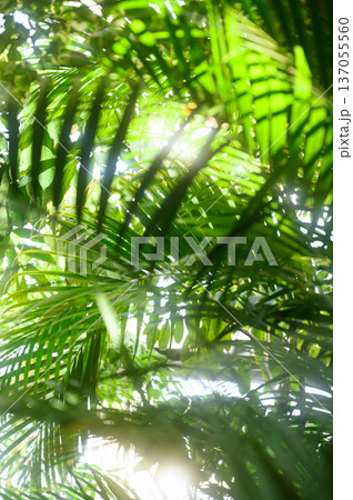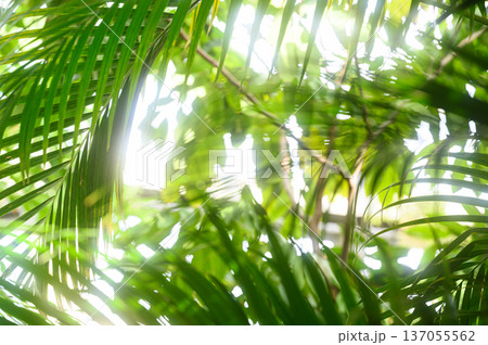 緑の葉の隙間から差し込む光 南国のイメージ