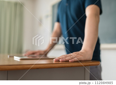 古臭い熱血漫画風・ガッツポーズで喜ぶ教師のバナー