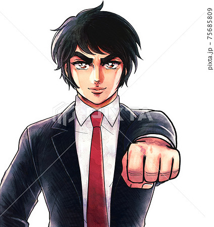 昔の漫画風・熱血教師あるいはサラリーマン・正拳突き