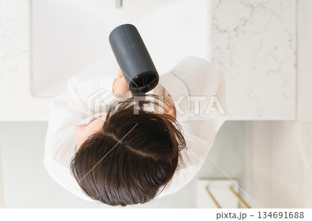 ドライヤーで髪を乾かしている女性 ビューティイメージ