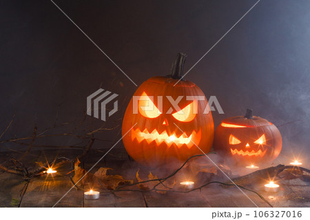 Halloween pumpkins in mist
