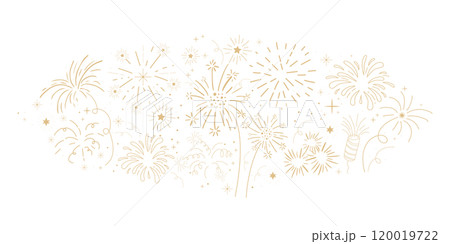 Pattern firework new year. Sparkling firework pattern with gold spark, star, and doodle explosion elements for holiday decoration and new year celebration background. Vector