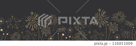 Golden fireworks seamless background. hand drawing. Not AI, Vector illustration.