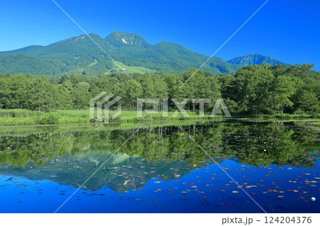 【新潟県】快晴の妙高山と満開のスイレン(いもり池)