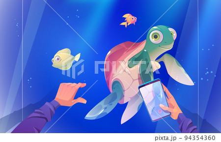 Character record video of turtle swim in aquarium
