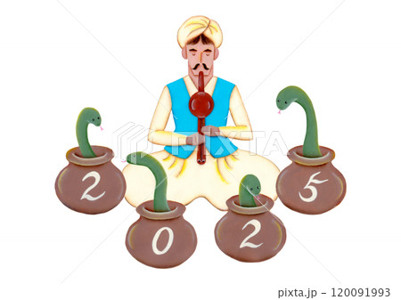 笑顔の蛇のイラスト 年賀状素材 2025 水玉模様