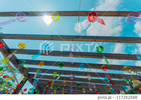 風に揺れるカラフルな風鈴 群馬県藤岡市