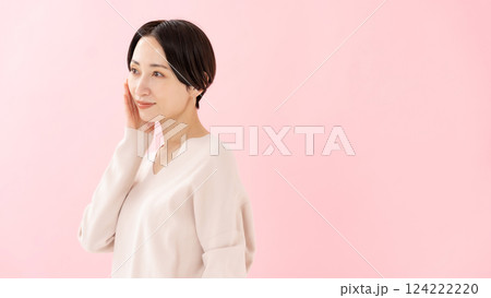 頬を触る女性 ビューティー 潤い