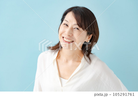 ビューティー 女性 ブルーバック