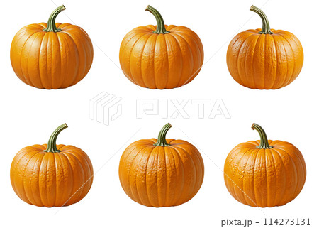 Pumpkinset collection. Photo realistic fresh orange ripe pumpkin, isolated on white background. Vegetarian food. Vegetable theme design elements set.