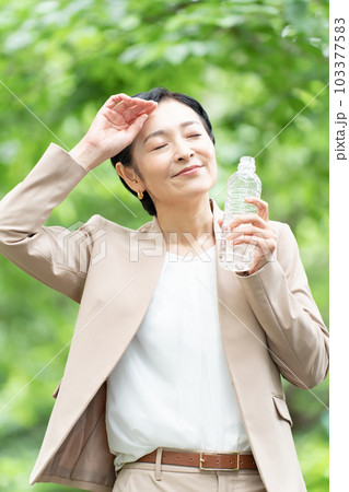 ビジネス 女性 新緑 水 熱中症
