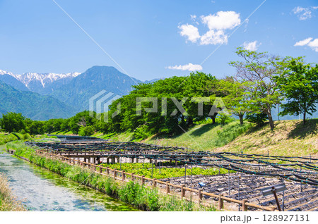初夏の有明山とわさび田 安曇野