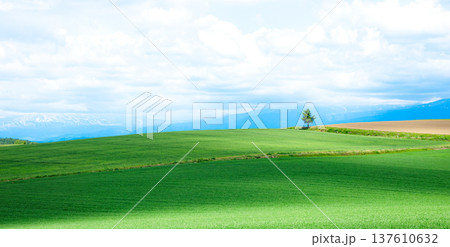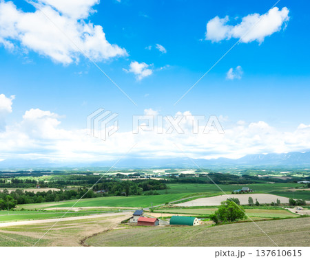 北海道美瑛町の青空と雲の爽やかな風景