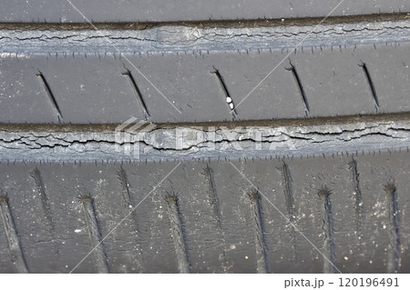 摩耗タイヤ スリップサイン ひび割れたタイヤ