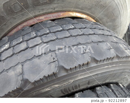 摩耗 スリップサイン ひび割れた 廃棄タイヤの山