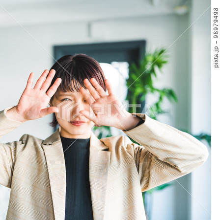 顔を隠す女性のポートレート