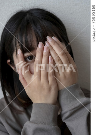 顔を隠す女性のポートレート