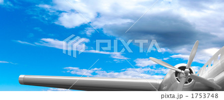 銀色のプロペラ飛行機 片翼 白背景 CG