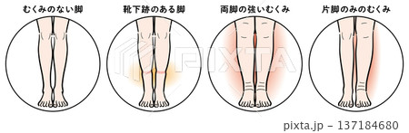脚のむくみの症状比較(靴下跡・両脚むくみ・片脚のみ)文字なしバージョン