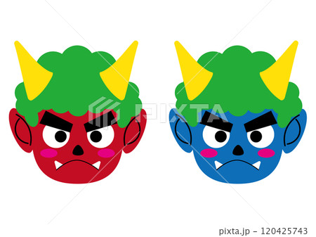 赤鬼と青鬼のシンプルでフラットな白バックのイラストセット 節分イメージ