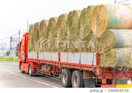 麦稈ロールを運ぶトラック