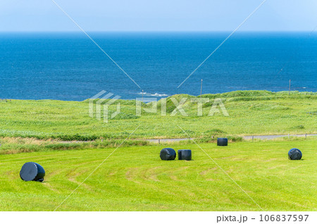 牧草ロール 草原 海