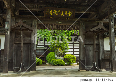 牛伏寺(ごふせじ) 仁王門と2頭の牛の銅像 長野県松本市