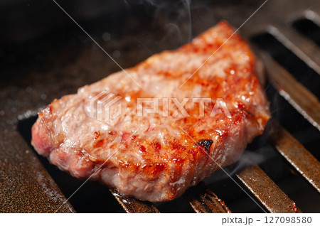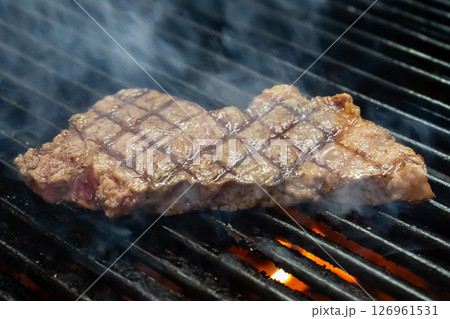 バーベキュー(BBQ)ステーキ肉焼き途中