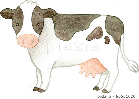可愛い乳牛(ホルスタイン)の水彩イラスト