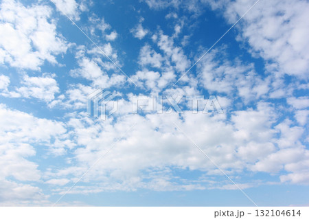 White puffy clouds above calm sea