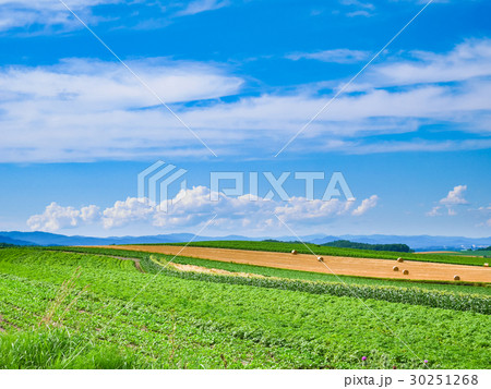 北海道 十勝地方 牧場のある風景