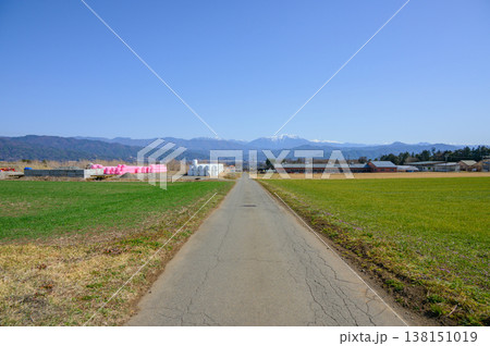 農業風景 収穫後の田んぼに並ぶ白いラップサイレージ