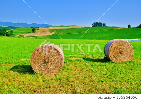 夏の北海道 北の大地と麦稈ロール(北海道イメージ)
