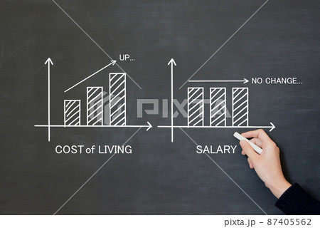 物価・生活費のグラフと給料の推移のグラフの比較