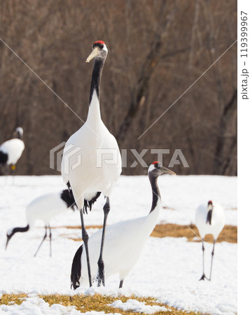 阿寒国際ツルセンター・グルスで餌をついばむタンチョウ