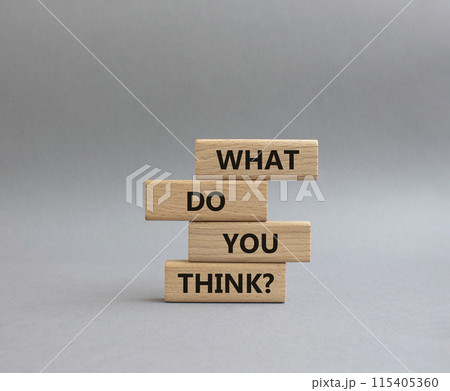 What do you think symbol. Wooden blocks with words What do you think. Beautiful grey background. Business and What do you think concept. Copy space.