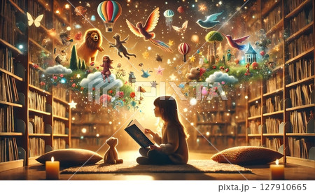 メルヘンの世界に迷い込んだ少女 光に包まれた魔法の瞬間