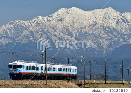 あいの風とやま鉄道の観光列車『一万三千尺物語』と立山連峰