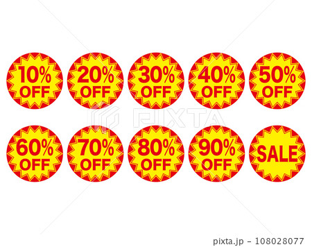 セール割引率(10〜90%OFF)アイコンラベルセット 赤・黄