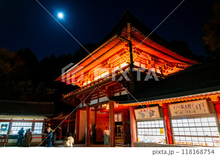 【奈良県】ライトアップされた春日大社と月
