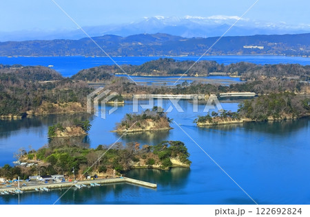 【宮城県】晴天の松島湾と蔵王連峰(日本三景)