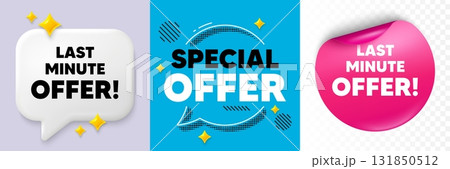 Last minute offer speech bubble. 3d sparkles chat, Paper sticker. Last minute offer tag. Special price deal sign. Advertising discounts symbol. Special offer bubble. Halftone dots pattern. Vector
