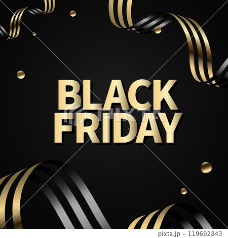 3d ribbons with on dark background for Black Friday sale banner. Crossed ribbons in the dark, perfect for fashion advertising, promotion, or holiday discount design.